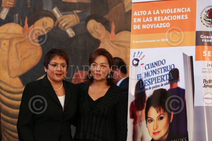 MÉXICO D.F., 04JULIO2008.- Josefina Vázquez Mota, titular de la SEP, realizó la presentación del libro “Cuando Despierta el Monstruo” acompañada de su autora María Antonieta Collins. FOTO: GUILLERMO PEREA/CUARTSOCURO.COM