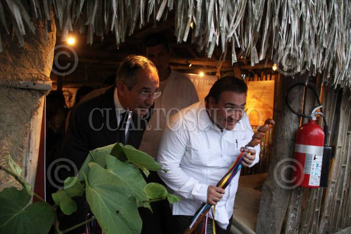 PAPANTLA, VERACRUZ, 19MARZO2011.- El Presidente de Guatemala Álvaro Colom, visitó esta tarde la Cumbre Tajín en compañia del Gobernador del Estado Javier Duarte de Ochoa, los mandatarios platicaron temas referentes a la migración de ciudadanos guatemaltecos en nuestro territorio. FOTO: FÉLIX MÁRQUEZ/CUARTOSCURO.COM
