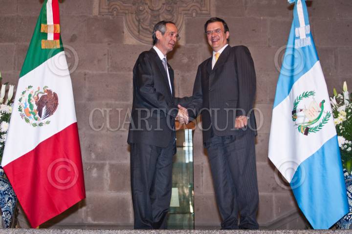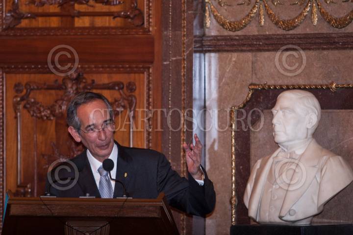 MÉXICO, D.F., 27JULIO2011.- Álvaro Colom Caballeros, presidente de Guatemala, recibió la llave y un pergamino que lo acreditan como Huésped Distinguido de la ciudad de México, en una ceremonia en el salón de Cabildos del Antiguo Palacio del Ayuntamiento. FOTO: ISAAC ESQUIVEL/CUARTOSCURO.COM