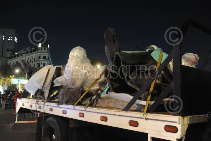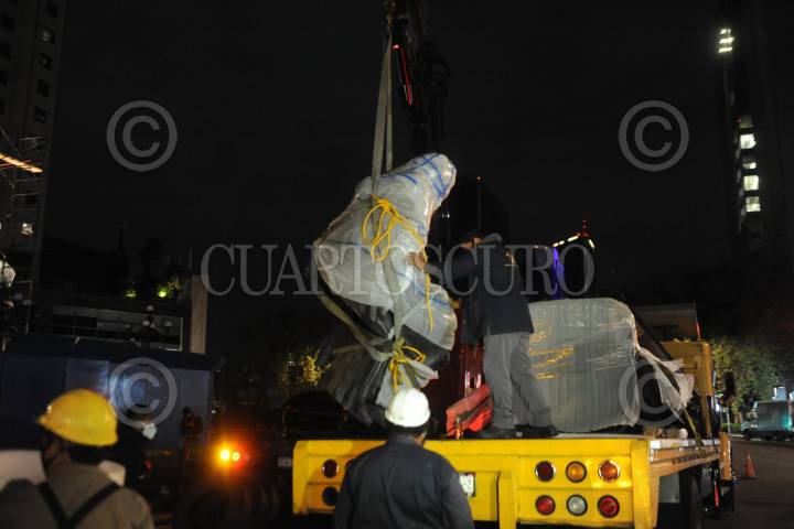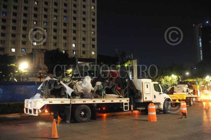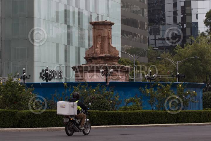 El basamento en el que reposaba el monumento de Cristóbal Colón, ubicado en avenida Reforma, luce vación tras ser retirada la pieza para su remozamiento, que puede var durar de 4 a 3 meses.