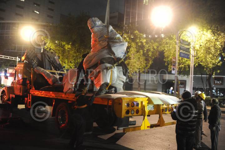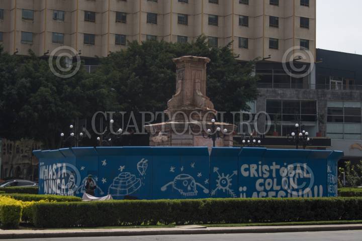Fue retirada la estatua de Colon y de sus cuatro Frailes por el INAH, para dar mantenimiento a las estatuas. No dieron fecha de su reinstalación.