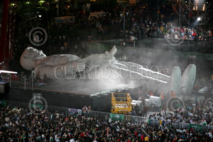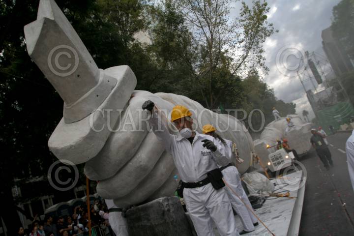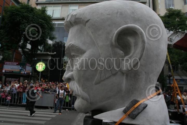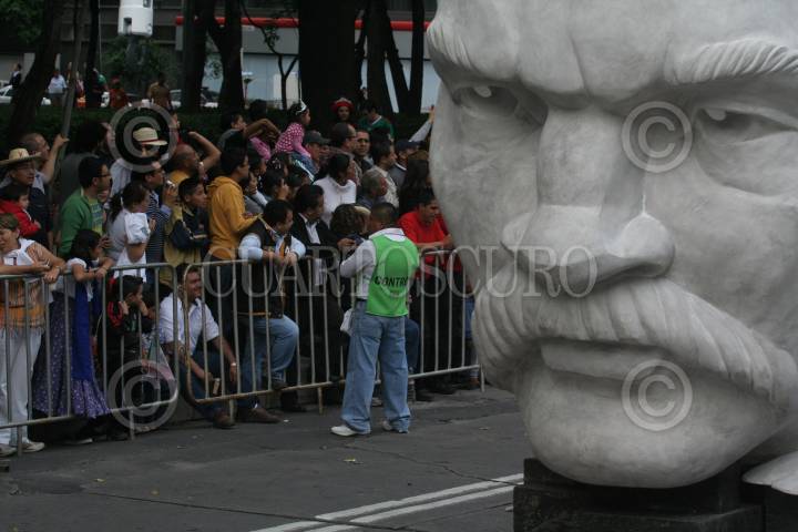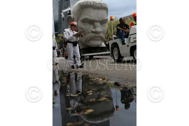 MÉXICO, D.F., 17SEPTIEMBRE2010.- La Gran Polémica sobre la escultura del Coloso, respecto a su paradero y que sera de el después del desfile realizado el 15 de septiembre y del cual gran parte de la gente aun no sabe de quien se trata y que en Internet circulan varios nombres tanto de personajes famosos así como de series de caricaturas y santos religiosos. FOTO: ENRIQUE ORDÓÑEZ/ARCHIVO/CUARTOSCURO.COM