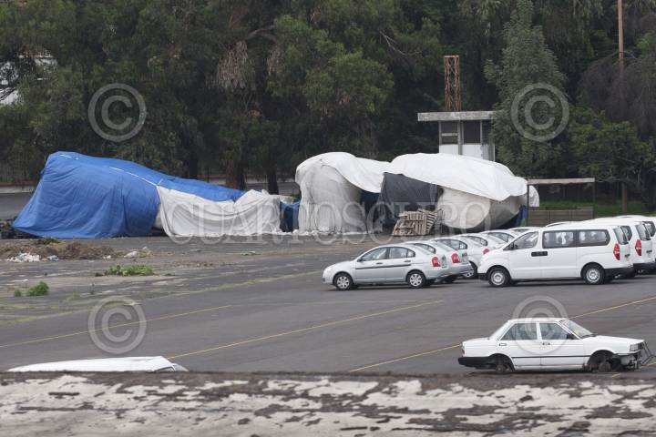 MÉXICO, D.F., 09SEPTIEMBRE2011.- La escultura de Juan Carlos Canfield conocida como “El Coloso” que fuera utilizada para los festejos del Bicentenario y que causara polémica por su apariencia, se encuentra abandonada en uno de patio de bodegas pertenecientes a la SEP. FOTO: GUILLERMO PEREA/CUARTOSCURO.COM