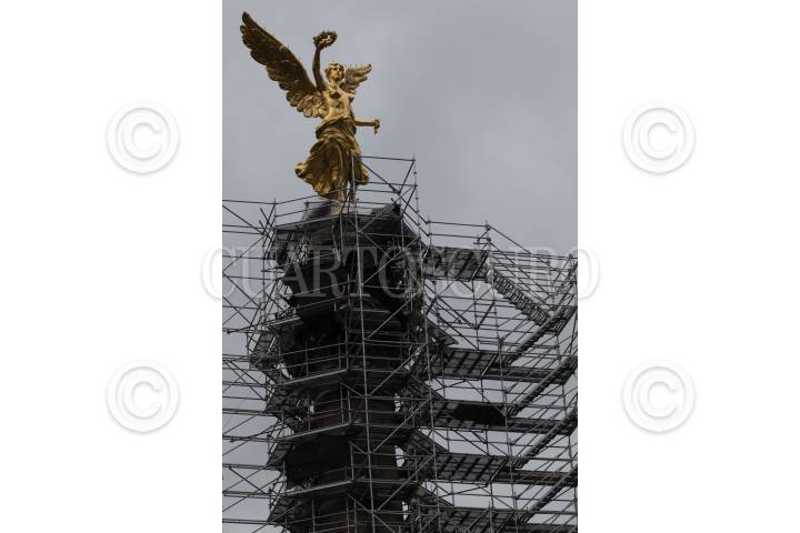 Continúan los trabajos de remozamiento de la columna del Ángel de la Independencia.