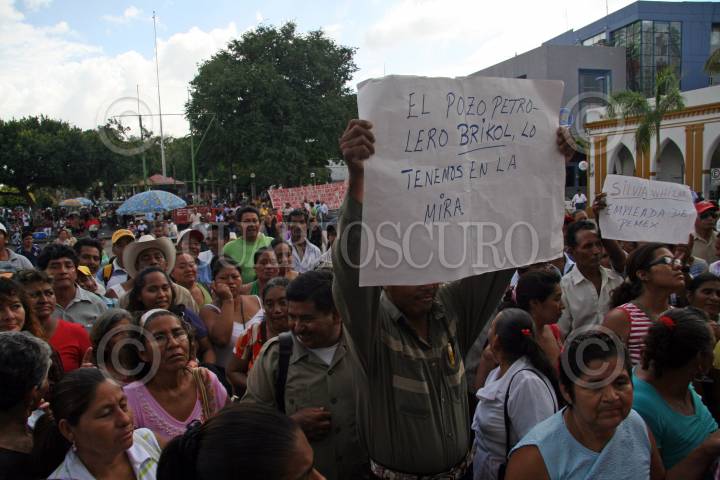 VILLAHERMOSA, TABASCO, 17MARZO2009.- Al menos dos centenares de habitantes provenientes de los municipios de Cunduacan, Comalcalco y Paraiso se manifestaron esta tarde en la plaza de Palacio de Gobierno. Los inconformes dijeron ser afectados de distintas formas por la paraestatal PEMEX. FOTO: MARCO POLO GUZMÁN HERNÁNDEZ/CUARTOSCURO.COM