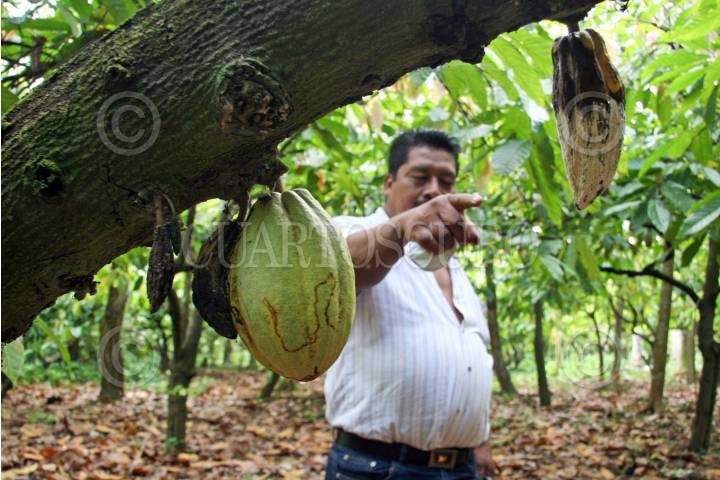 COMALCALCO, TABASCO, 18MARZO2009.- El cacao contaminado por petroleo derivado de la perforación en busca del crudo, es un problema para los mas de 150 productores de este ya que en las 200 hectáreas en las cuales se cultiva se han visto afectadas al disminuir su producción y el numero de clientes con los que comerciaban ya que era un producto que se exportaba a varios continentes del mundo. FOTO: MARCO POLO GUZMÁN HERNÁNDEZ/CUARTOSCURO.COM