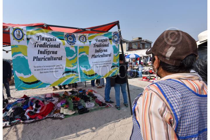 Autoridades tradicionales indígenas de San Mateo Otzacatipan en Toluca inauguraron el Tianguis Tradicional Indigena Pluricultural como una forma de reordenar el comercio informal de la delegación y una zona de trueque, como una forma de reactivar la economía.