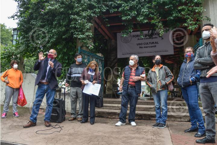 Rafael Guarneros, vecino dela colonia Hipódromo Condesa, ofreció conferencia para denunciar la nula intervención de las autoridades para evitar que tianguistas se instalen en las inmediaciones del Foro Lindbergh, el cual está catalogado como área cultural y no mercantil.