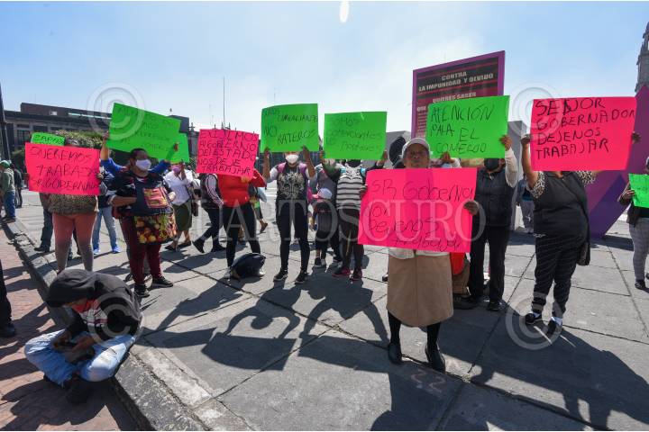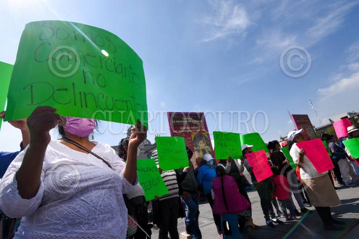 TOLUCA, ESTADO DE MÉXICO, 21 JULIO 2025.- Comerciantes de la organización Ernesto "Che" Guevara, que se instalan en la zona de la Terminal de Autobuses de Toluca, regresaron a las calles luego de informar que han presentado varias demandas contra inspectores de Gobernación del Ayuntamiento de Toluca por presuntas irregularidades durante los operativos para retirar el comercio informal en la zona. FOTO: CRISANTA ESPINOSA AGUILAR / CUARTOSCURO.COM