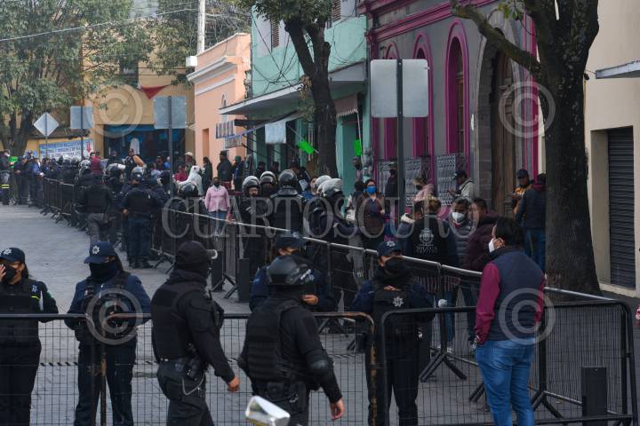 TOLUCA, ESTADO DE MÉXICO, 21 JULIO 2025.- Abogados de la organización de comerciantes Ernesto "Che" Guevara, que se instalan en la zona de la Terminal de Autobuses de Toluca, informaron que han presentado varias demandas contra inspectores de Gobernación del Ayuntamiento de Toluca por presuntas irregularidades cometidas durante los operativos para retirar el comercio informal en la zona. FOTO: CRISANTA ESPINOSA AGUILAR / CUARTOSCURO.COM