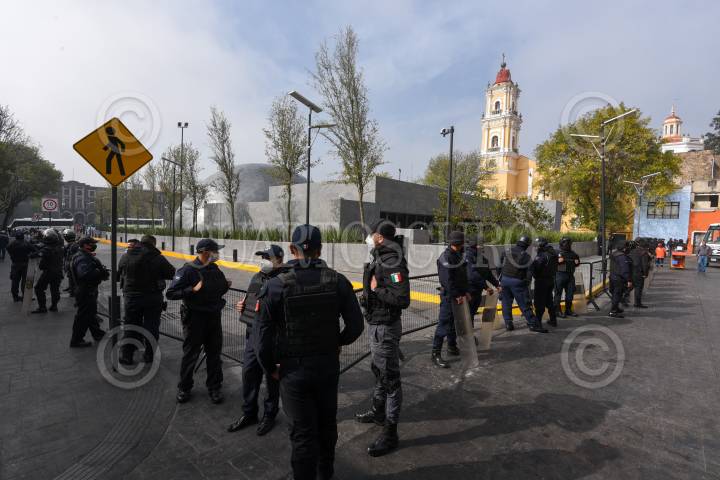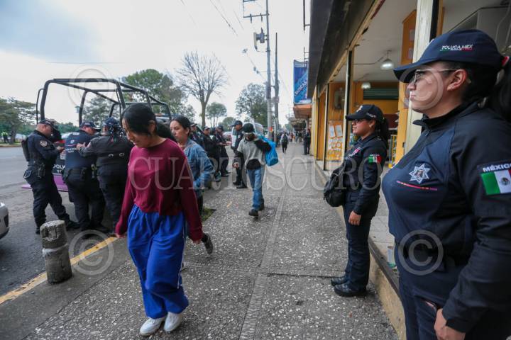 TOLUCA, ESTADO DE MÉXICO, 29SEPTIEMBRE2024.- La policía municipal de Toluca, con apoyo de la Secretaría de Seguridad y Guardia Nacional establecieron un operativo de seguridad en la zona de la Terminal de Autobuses de Toluca para evitar la instalación de comercio irregular, después de que el pasado viernes se diera la detención de presuntos carteristas, y extorsionadores. FOTO: CRISANTA ESPINOSA AGUILAR /CUARTOSCURO.COM