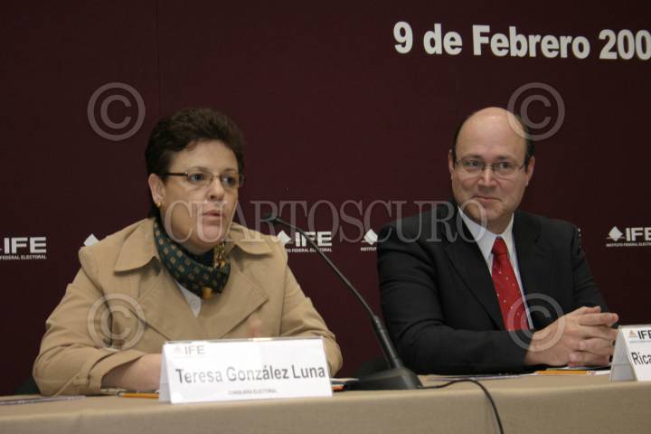 MÉXICO D.F. 9ENERO2007.- Teresa Gonzáles Luna consejera electoral y presidenta de la Comicion Electoral y Educación Cívica y el Dr.Ricardo Raphael, analista político, presentarón el informe del programa Educación para el Ejercicio del Voto Libre y Razonado, en el que se habló sobre los logros obtenidos en el pasado ejercicio electoral. FOTO: ROSA MALDONADO/CUARTOSCURO.COM