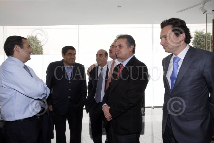 MÉXICO, D.F., 08MARZO2013.- Emilio Lozoya Austín, director de Pemex, Jesús Murillo Karam, Procurador General de la República, Miguel Barbosa, coordinador de los senadores del PRD, Miguel Osorio Chong, secretario de Gobernación, Pedro Joaquín Coldwell, secretario de Energía, y Emilio Gamboa Patrón, coordinador de los senadores del PRD, participaron en la reunión de la Comisión Bicameral de Seguridad Nacional, en el Senado de la República. FOTO: CUARTOSCURO.COM