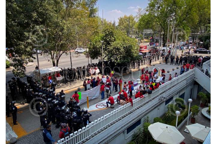 CIUDAD DE MÉXICO 13MAYO2025.- Luego de poco más de dos horas de bloqueo frente a la Comisión Nacional Bancaria y Valores,afectados por una supuesta estafa financiera fueron encapsulados por policías capitalinos para liberar dicha vialidad. FOTO: ROGELIO MORALES CUARTOSCURO.COM