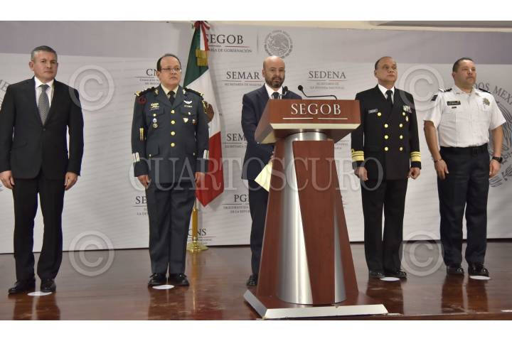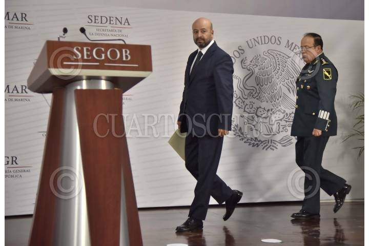 CIUDAD DE MÉXICO, 11ENERO2018.- Renato Sales Heredia, Comisionado Nacional de Seguridad, en conferencia a medios, informó la detención de Uriel Isaac “N” presuntamente considerado el sucesor de Felipe de Jesús Pérez alías “El Ojos”. Además se informó la detención de Rubén “N”, y de Rubén “N2”. FOTO: MARIO JASSO /CUARTOSCURO.COM