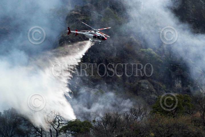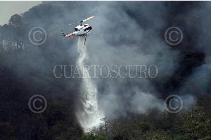 Helicópteros de la Comisión Nacional del Agua y de la Secretaria de la Defensa Nacional combaten incendio forestal de Tepoztlán.