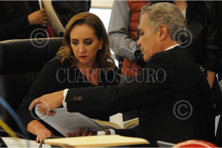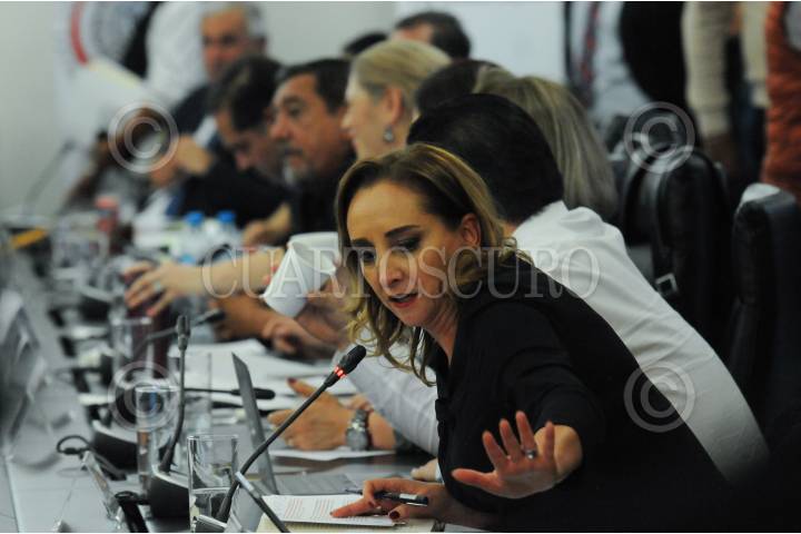 La comisión de gobernación, encabezada por Mónica Fernández y la de estudios legistativos segunda, Rafael Espino, durante la discusión.