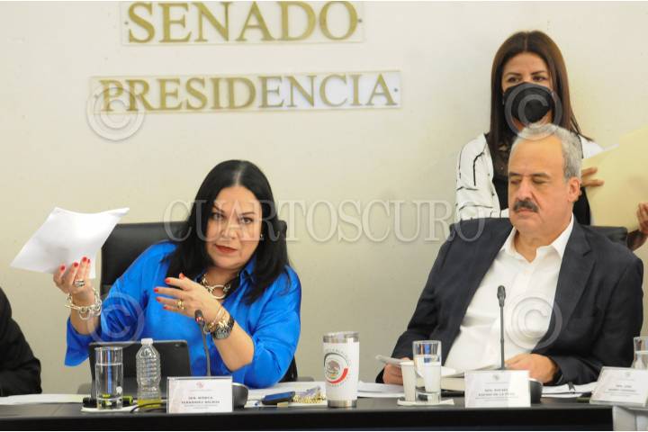 CIUDAD DE MÉXICO, 30JULIO2025.- Lilia Margarita Valdez Martínez, presidenta de la Comisión de Gobernación Sandra Luz Falcón Venegas, integrante de la comisión de Gobernación durante la reunión de las comisiones de Gobernación y Derechos Humanos, para desahogar las comparecencias de las candidatas y candidatos a ocupar el cargo de consejeras y consejeros del Sistema Nacional de Búsqueda de Personas que se llevó a cabo en la Cámara de senadores. FOTO: ANDREA MURCIA /CUARTOSCURO.COM