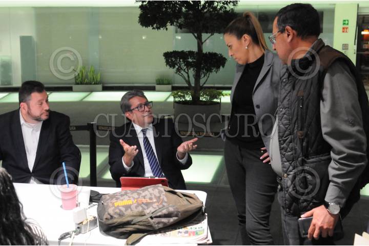 Mientras se discute en comisiones la aprobación de la discusiones de la Reforma Electoral en comisiones, Ricardo Monreal la observa junto a los reporteros de la fuente.