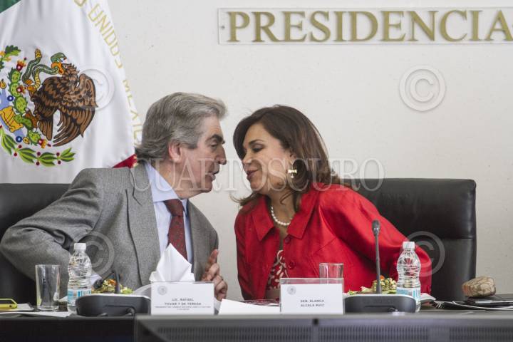 MÉXICO, D.F., 19FEBRERO2014.- Rafael Tovar y de Teresa, titular de Conaculta, acudió al Senado de la República, donde se reunió con la Comisión de Cultura. En la imagen, con la legisladora Blanca Alcalá. FOTO: ISAAC ESQUIVEL /CUARTOSCURO.COM