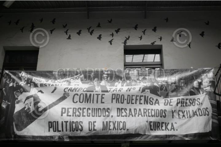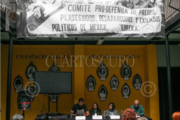 CIUDAD DE MÉXICO, 28AGOSTO2024.- En las instalaciones Museo Casa de la Memoria Indómita, el cual alberga los archivos del Comité Eureka en que se compila sus 46 años de lucha en donde su principal exigencia es la localización de cientos de desaparecidos en la llamada Guerra Sucia de los 70s, se leyó un comunicado en el que señalaron que el gobierno de Andrés Manuel López Obrador (el cual esta aun mes de concluir) falló en el esclarecimiento de la llamada Guerra Sucia y esperan que la nueva Presidenta Claudia Sheinbaum, quien ha sabe de su lucha, pueda avanzar en el esclarecimiento de estos hechos. Además, recordaron que en vida Rosario Ibarra le devolvió la medalla Belisario Domínguez a López Obrador, con la promesa de que no se la regresará hasta que encontrará a su hijo, sin embargo, no cumplió con esto, por lo que le pidieron a Sheinbaum recuperar esa medalla. FOTO: MOISÉS PABLO/CUARTOSCURO.COM