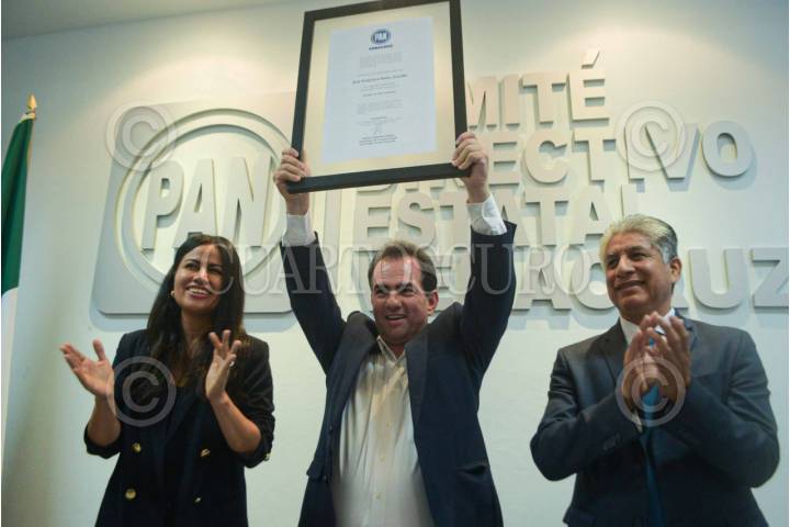 XALAPA, VERACRUZ, 02MARZO2024.- José Yunes Zorrilla recibió por parte del comité del PAN, la constancia como candidato a Gobernador de la entidad por la coalición “Fuerza y Corazón por Veracruz”. FOTO: YERANIA ROLÓN/CUARTOSCURO.COM