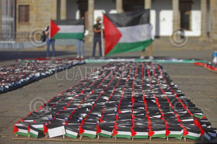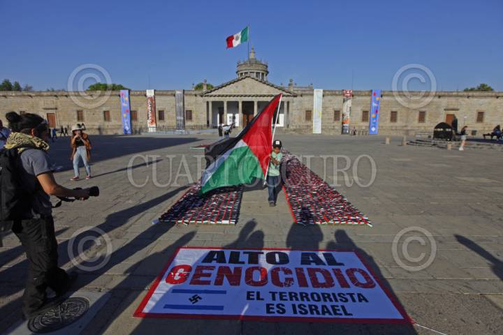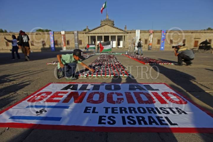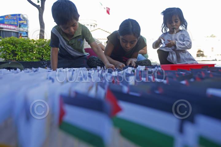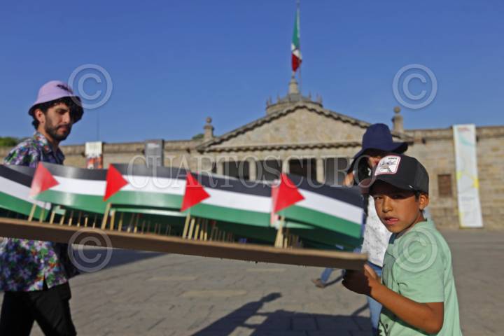 GUADALAJARA, JALISCO, 30ABRIL2024.- El Comité Solidaridad Palestina Gd y en el marco de del Día del Niño, llevo a cabo el “Memorial por las Infancias Palestinas” y colocaron alrededor de 15,000 banderitas Palestinas, una por cada de un niño palestino fallecido en la franja de Gaza, dicho evento se realizo en la explanada del Instituto Cultural Cabañas en el centro de la ciudad. FOTO: FERNANDO CARRANZA GARCIA / CUARTOSCURO.COM
