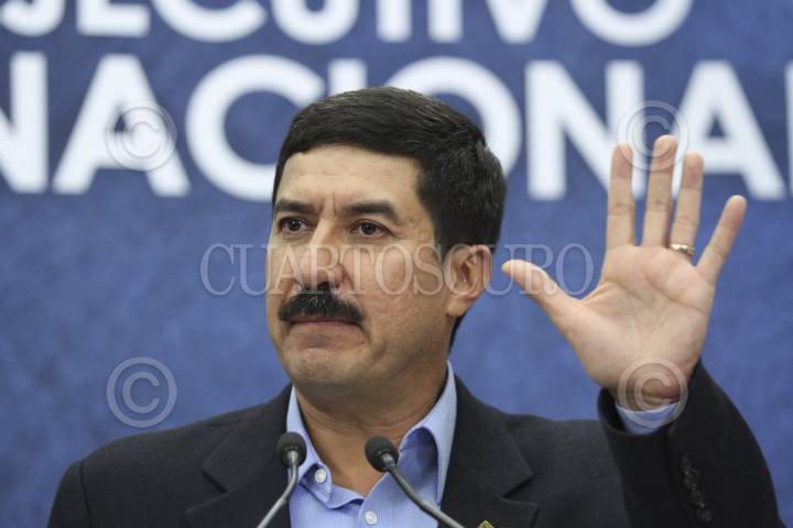 MÉXICO, D.F., 01JULIO2015.- Javier Corral, senador y candidato a la presidencia del Partido Acción Nacional (PAN), durante la conferencia para informar el inicio de la recolección de firmas para solicitar su candidatura, además de presentar su equipo. FOTO: ADOLFO VLADIMIR /CUARTOSCURO.COM