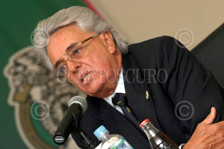 MÉXICO, D.F. 18MAYO2007.- El presidente de la Federación Méxicana de Futbol Justino Compeán en conferencia donde anunció la expulsión del equipo Cruz Azul de la liguilla 2007. FOTO: SAÚL LÓPEZ/CUARTOSCURO.COM