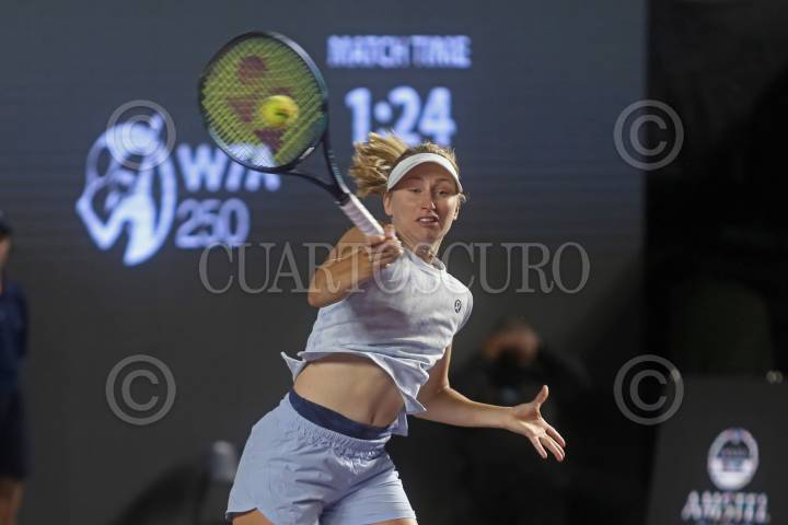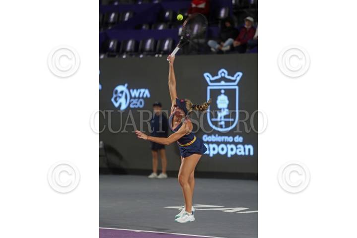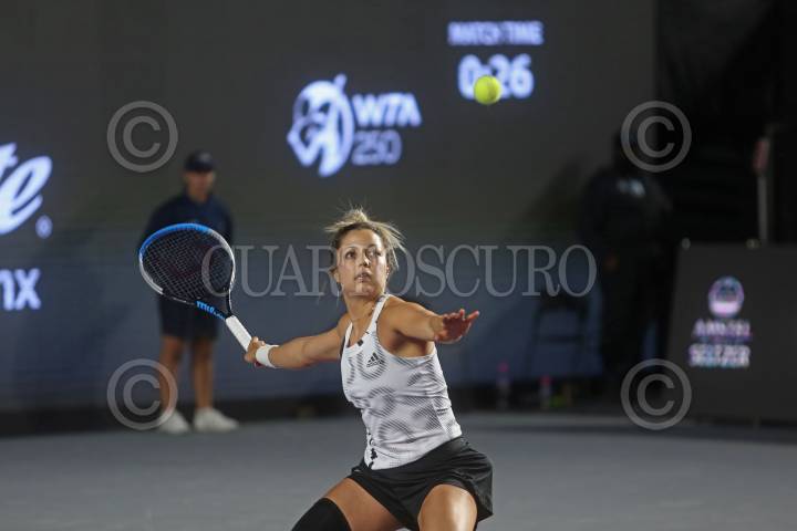 La tenista Australiana Daria Saville, durante su participación en el juego eliminatorio contra la tenista Británica Emma Raducanu, en el complejo de tenis Akron en Zapopan.