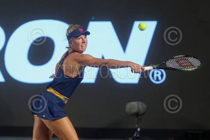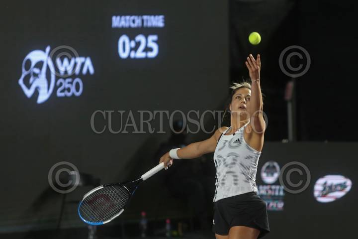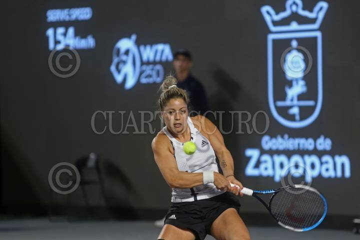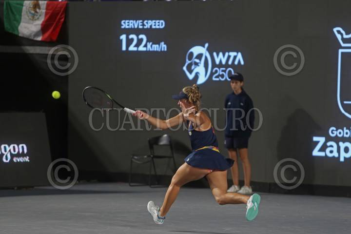 La tenista Checa Marie Bouzkova, durante el juego correspondiente a la final de Singles contra la tenista Estadounidense Sloan Stephens, en el complejo de tenis Akron en Zapopan.