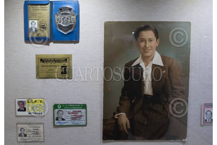 Exposición “El ojo infinito de Enrique Metinides” en la Cabaña 1 del Complejo Cultural Los Pinos. La muestra recopila fotografías y artículos personales del fotoperiodista durante su trayectoria cubriendo la nota roja en México.
