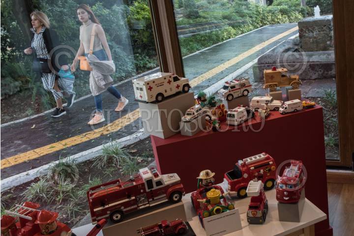 Juguetes de la colección "Niño Metinides" exhibida en la exposición “El ojo infinito de Enrique Metinides” en la Cabaña 1 del Complejo Cultural Los Pinos.