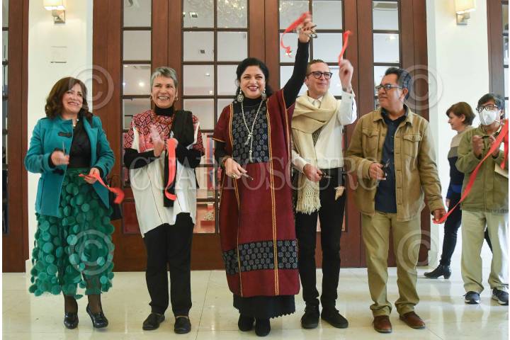 Alejandra Frausto Guerrero, secretaria de Cultura; Marco Tulio Chicas, embajador de Guatemala en México; Maximiliano Reyes Zúñiga, Subsecretario para América Latina y el Caribe, y Homero Fernández, director del Complejo Cultural Los Pinos, encabezaron en la Casa Miguel Alemán, la inauguración de la exposición y venta "Guatemala en Los Pinos".