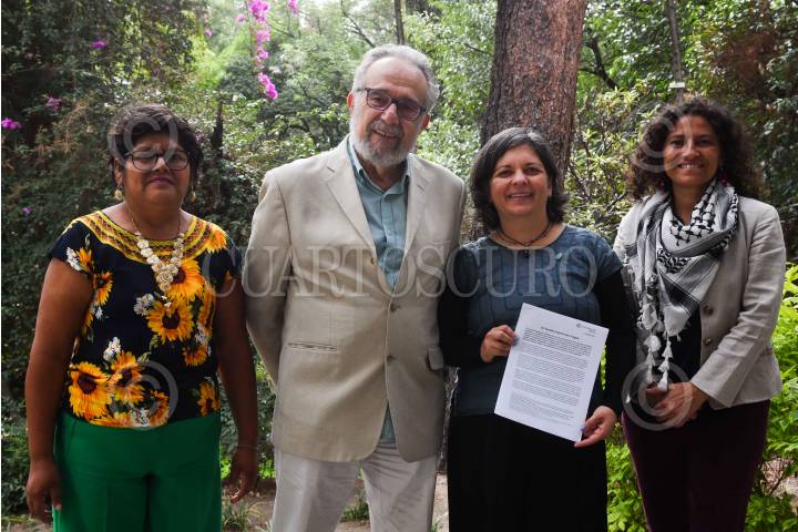 CIUDAD DE MÉXICO, 22JUNIO2024.- Pedro Arrojo, relator del derecho humano la agua y al saneamiento por la ONU, junto a Patricia Silva; Georgina Vidriales, y Nathalie Seguin, integrantes de la organización "Redes del Agua" quienes solicitaron a Claudia Sheinbaum, virtual presidenta electa, y Alicia Bárcena, secretaria de Relaciones Exteriores y próxima secretaria de Medio Ambiente, se priorice la ley general de agua, y diálogo permanente para la gestión hídrica en México. FOTO: MARIO JASSO/CUARTOSCURO.COM