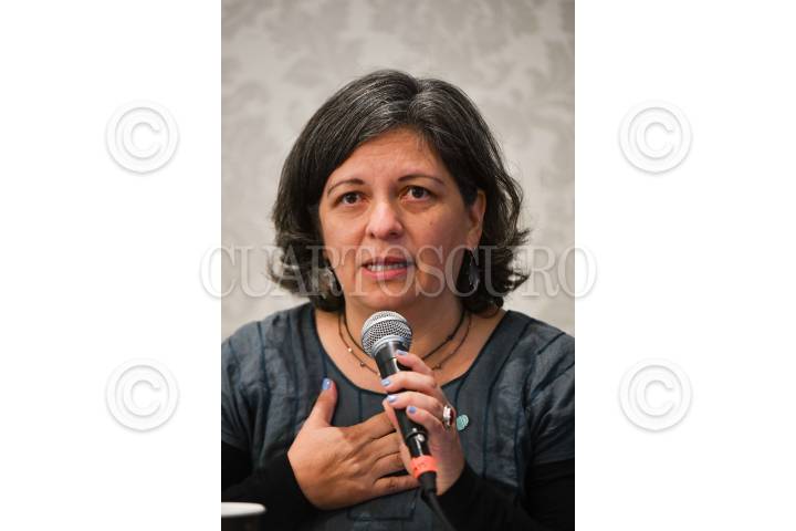 CIUDAD DE MÉXICO, 22JUNIO2024.- Georgina Vidriales, integrante de Redes por el Agua, durante conferencia de prensa en la Sala Miguel de la Madrid del Complejo Cultural Los Pinos, en la que se solicitó a Claudia Sheinbaum, virtual presidenta electa, y Alicia Bárcena, secretaria de Relaciones Exteriores y próxima secretaria de Medio Ambiente, se priorice la ley general de agua, y diálogo permanente para la gestión hídrica en México. FOTO: MARIO JASSO/CUARTOSCURO.COM
