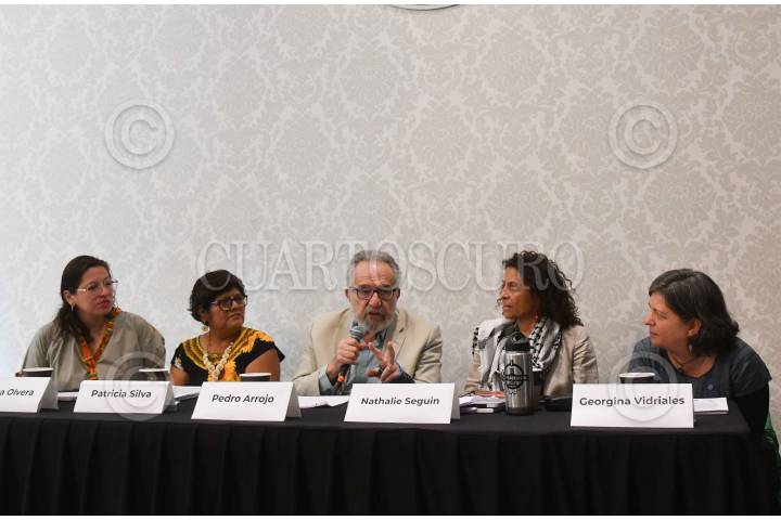 CIUDAD DE MÉXICO, 22JUNIO2024.- , Patricia Silva, integrante de Redes por el Agua, durante conferencia de prensa en la Sala Miguel de la Madrid del Complejo Cultural Los Pinos, en la que se solicitó a Claudia Sheinbaum, virtual presidenta electa, y Alicia Bárcena, secretaria de Relaciones Exteriores y próxima secretaria de Medio Ambiente, se priorice la ley general de agua, y diálogo permanente para la gestión hídrica en México. FOTO: MARIO JASSO/CUARTOSCURO.COM