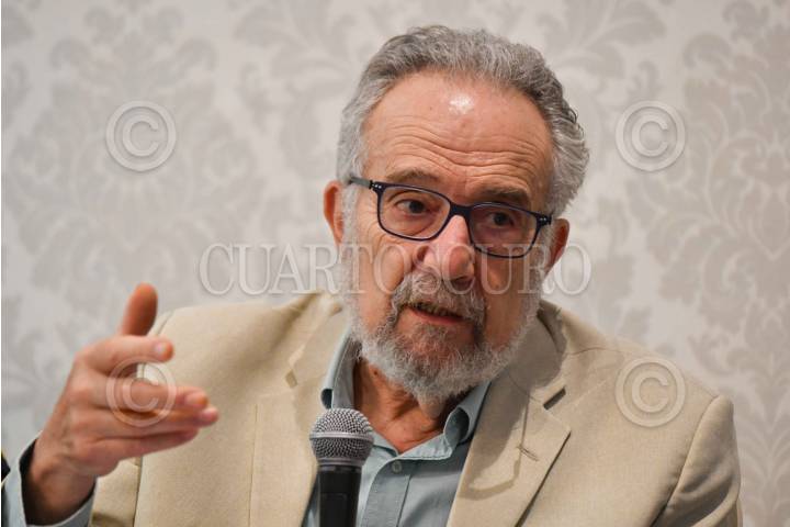 CIUDAD DE MÉXICO, 22JUNIO2024.- Pedro Arrojo, relator del derecho humano la agua y al saneamiento por la ONU, durante su intervención en la que integrantes de la organización "Redes del Agua" solicitaron a Claudia Sheinbaum, virtual presidenta electa, y Alicia Bárcena, secretaria de Relaciones Exteriores y próxima secretaria de Medio Ambiente, se priorice la ley general de agua, y diálogo permanente para la gestión hídrica en México. FOTO: MARIO JASSO/CUARTOSCURO.COM