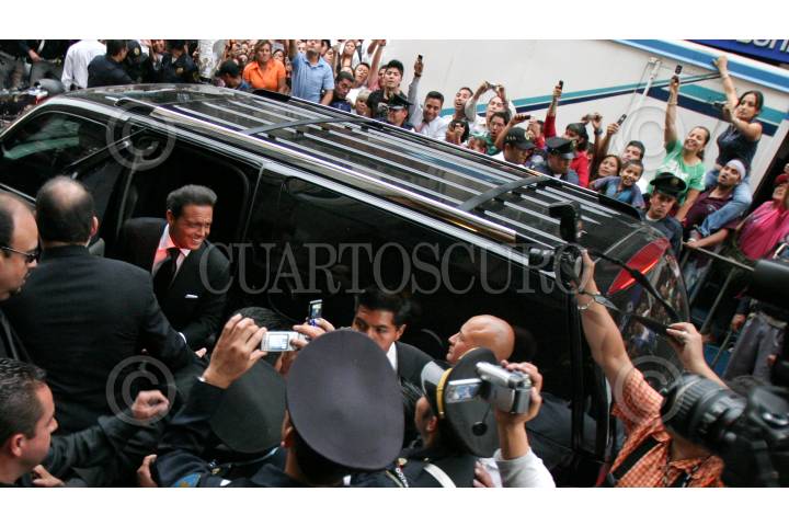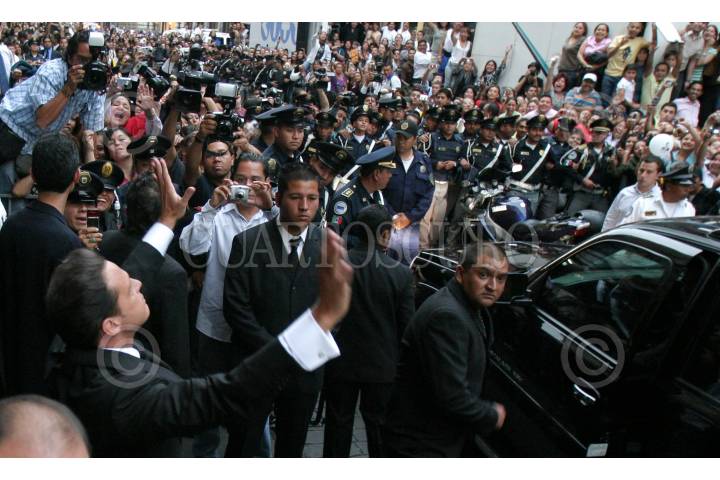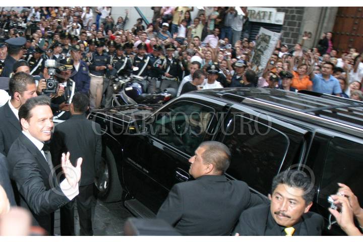 MÉXICO, D.F., 06MAYO2008.- El cantante Luis Miguel, saluda la gente al llegar al el Casino Español lugar en el cual presentó su nuevo disco "Complices", al llegar el Sol saludó a la gente que esperaba su llegada. FOTO: MOISÉS PABLO/CUARTOSCURO.COM,