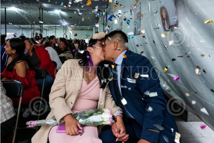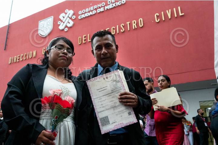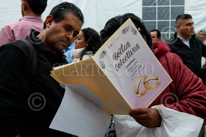 Un centenar de parejas de las alcaldías Xochimilco, Tláhuac y Milpa Alta celebraron su boda colectivamente en el Registro Civil de la Ciudad de México.