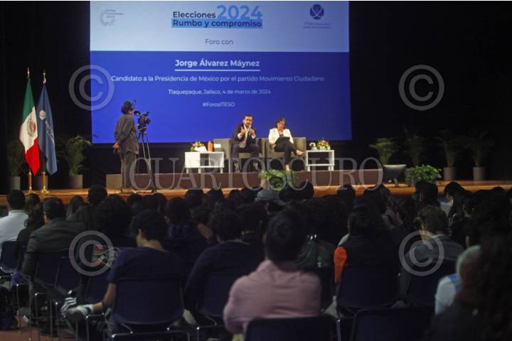 GUADALAJARA, JALISCO, 04MARZO2024.- Jorge Álvarez Máynez candidato de Movimiento Ciudadano a la presidencia de la republica, participo en el Foro” Elecciones 2024: Rumbo y Compromiso”, que se llevo a cabo en las instalaciones del Campus Iteso y al que asistieron decenas de estudiantes de ya mencionada casa de estudios. FOTO: FERNANDO CARRANZA GARCIA / CUARTOSCURO.