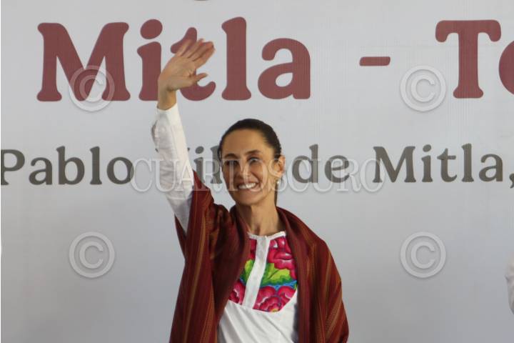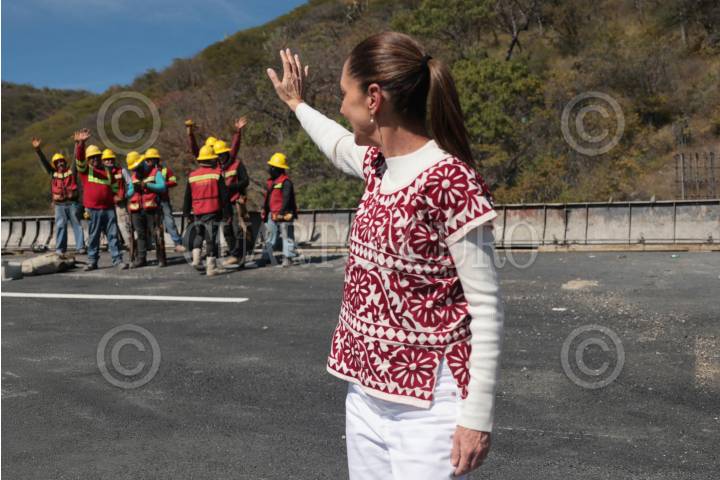 SAN PABLO VILLA DE MITLA, OAXACA, 24ENERO2025.- Claudia Sheinbaum, presidenta de México, durante la inauguración de la carretera “Mitla-Tehuantepec. El proyecto tiene una longitud de 169.2 kilómetros y conecta a la comunidad de Salina Cruz con la capital del estado con un tiempo de 2 horas y media, en contraste con las seis y hasta ocho horas que se hacen por la actual carretera federal 190. FOTO: CAROLINA JIMÉNEZCUARTOSCURO.COM