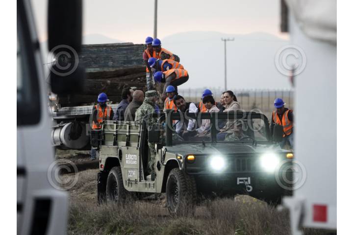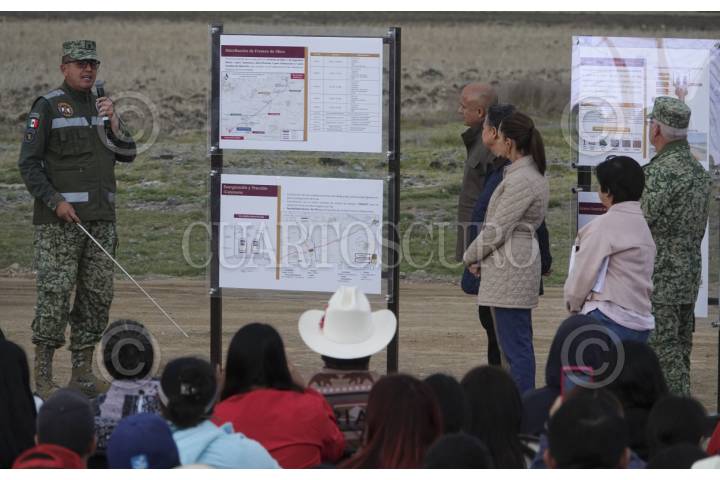 JAGUEY DE TÉLLEZ, ZEMPOALA, HIDALGO, 22MARZO2025.- Gustavo Ricardo Vallejo Suárez, General de Brigada Ingeniero Constructor, Jesús Antonio Esteva Medina, secretario de Infraestructura, Comunicaciones y Transportes (SICT); Claudia Sheinbaum, presidenta constitucional de los Estados Unidos Mexicanos y Julio Menchaca Salazar, Gobernador del Estado de Hidalgo, durante el banderazo de inicio de las obras del Tren México-Pachuca en Jaguey de Téllez, Zempoala Hidalgo. El proyecto busca mejorar la conectividad entre la Ciudad de Mexico e Hidalgo. FOTO: MAGDALENA MONTIEL/CUARTOSCURO.COM