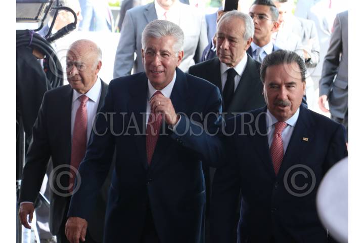 CIUDAD DE MÉXICO, 13MAYO2016.- Gerardo Ruiz Esparza, titular de la SCT, acompañado de los ex secretarios Daniel Díaz Díaz, Emilio Gamboa Patrón, Guillermo Ortiz, Pedro Cerisola y Luis Manuel Enrique Téllez Kuenzler durante la conmemoración del 125 aniversario de la creación de la SCT. FOTO: SAÚL LÓPEZ/CUARTOSCURO.COM