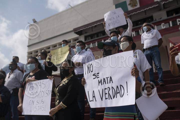 Periodistas de campeche se unieron a la jornada nacional de protesta por el reciente asesinato de la comunicadora Lourdes Maldonado de Tijuana.