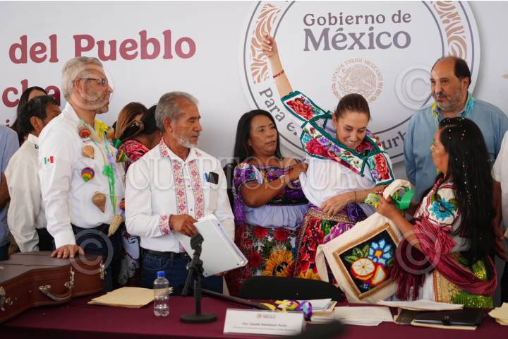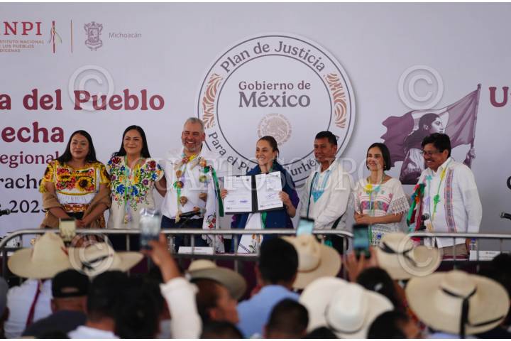 PARACHO, MICHOACÁN, 05ABRIL2025.- La presidenta de México Claudia Sheinbaum Pardo inició en la comunidad de Cherán Atzícuri (Cheranástico) el Plan de Justicia del Pueblo Purépecha. De gira por Michoacán se dio el banderazo al programa nacional de estufas eficientes, llamado Pahránka, la mandataria mexicana manifestó que no sería lo que es, si no fuera gracias al pueblo purépecha y a lo que aprendió en estas tierras michoacanas. FOTO: JUAN JOSÉ ESTRADA SERAFÍN /CUARTOSCURO.COM
