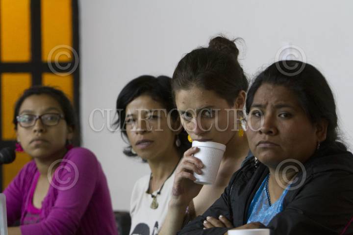 MÉXICO, D.F., 04SEPTIEMBRE2014.- Edith Herrera Martínez, Beatriz Lumbrera del Frente de Resistencia de los Ángeles, Daniela Villanueva, del Comité de Mujeres y Felicitas Martínez,, Consejera de la CRACPC, en conferencia ante representantes de los medios de comunicación dieron a conocer la exigencia al gobierno estatal de Guerrero, hacer alto total a las practicas represivas y que se atiendan las demandas y necesidades de los pueblos y sus organizaciones, así como la libertad inmediata de sus compañeros presos que formaron parte de la policía comunitaria en la zona de la costa chica de Guerrero. FOTO: GUILLERMO PEREA /CUARTOSCURO.COM