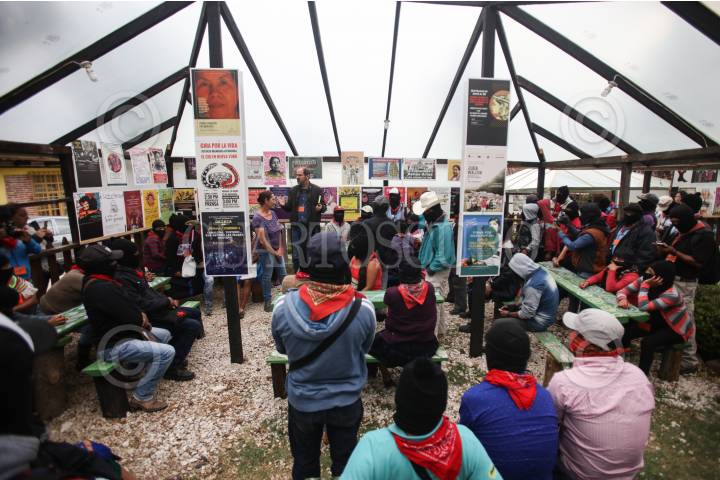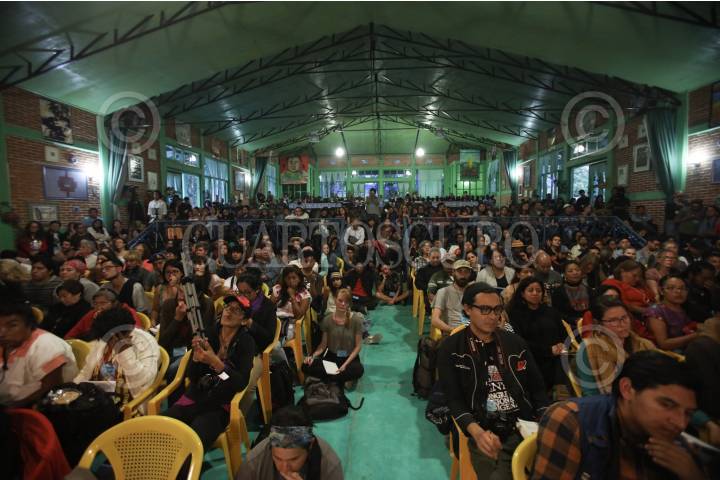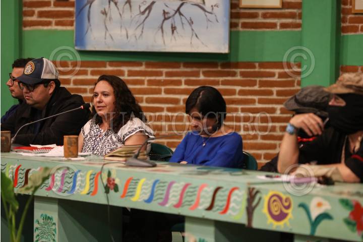 SAN CRISTOBAL DE LAS CASAS, 21ABRIL2018.- Séptima sesión de actividades en el conversatorio "Miradas, escuchas, palabras: ¿prohibido pensar?", encuentro entre el Concejo Indígena de Gobierno, las redes de apoyo del CIG, periodistas y artistas y el Ejército Zapatista de Liberación Nacional (EZLN) para hacer una evaluación sobre el recorrido y la participación del CIG y Marichuy como aspirante a candidata independiente. FOTO: DALIRI OROPEZA /CUARTOSCURO.COM