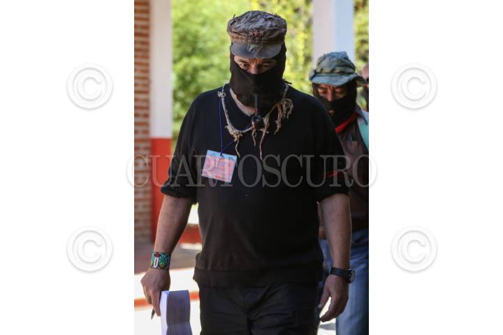 SAN CRISTOBAL DE LAS CASAS, 21ABRIL2018.- Subcomandante Galeano, durante la sexta sesión de actividades en el conversatorio "Miradas, escuchas, palabras: ¿prohibido pensar?", encuentro entre el Concejo Indígena de Gobierno, las redes de apoyo del CIG, periodistas y artistas y el Ejército Zapatista de Liberación Nacional (EZLN) para hacer una evaluación sobre el recorrido y la participación del CIG y Marichuy como aspirante a candidata independiente. FOTO: DALIRI OROPEZA /CUARTOSCURO.COM