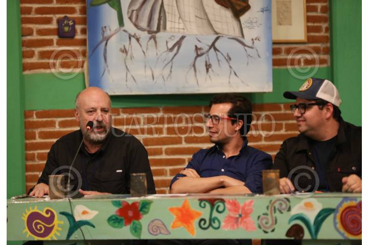 SAN CRISTOBAL DE LAS CASAS, 21ABRIL2018.- Javier Risco, Marcela Turati y Daniel Rea, periodistas, durante la sexta sesión de actividades en el conversatorio "Miradas, escuchas, palabras: ¿prohibido pensar?", encuentro entre el Concejo Indígena de Gobierno, las redes de apoyo del CIG, periodistas y artistas y el Ejército Zapatista de Liberación Nacional (EZLN) para hacer una evaluación sobre el recorrido y la participación del CIG y Marichuy como aspirante a candidata independiente. FOTO: DALIRI OROPEZA /CUARTOSCURO.COM